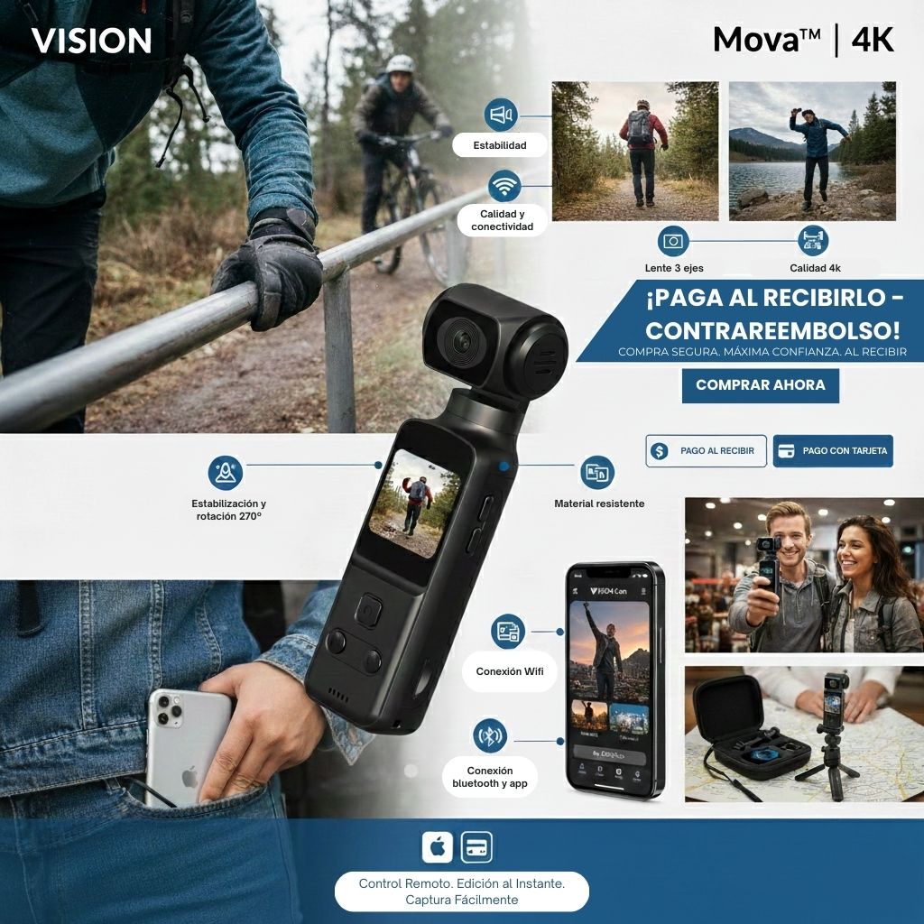 Mova™ | 4K – Rotación 270°, WiFi, Estabilización y Grabación en Movimiento